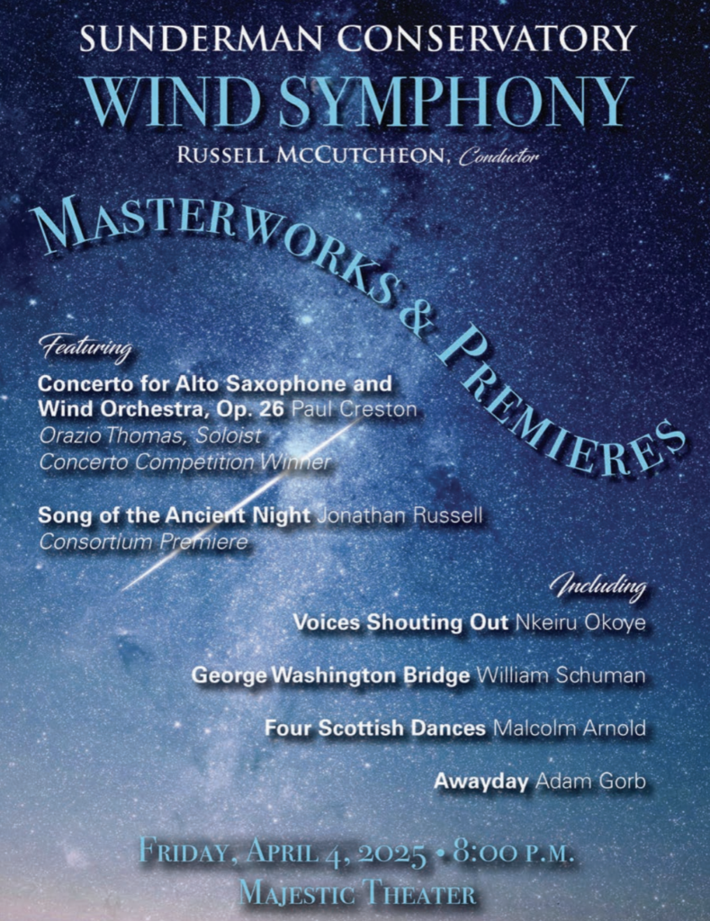 On Friday, the Gettysburg College wind symphony gave a performance titled “Masterworks & Premiers.” The program can be read online here.
